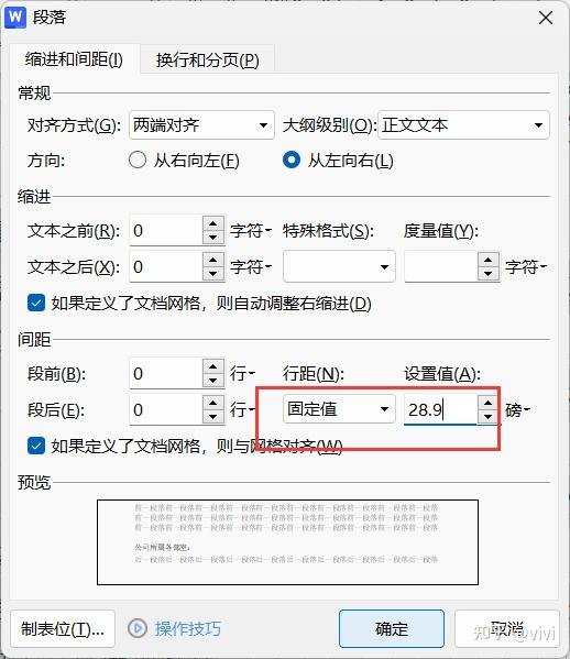 正文间距调整(一般为28.9-29.3)